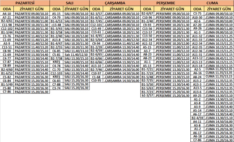 EKİM AYI AÇIK GÖRÜŞ ZİYARET GÜNLERİ VE SAATLERİ